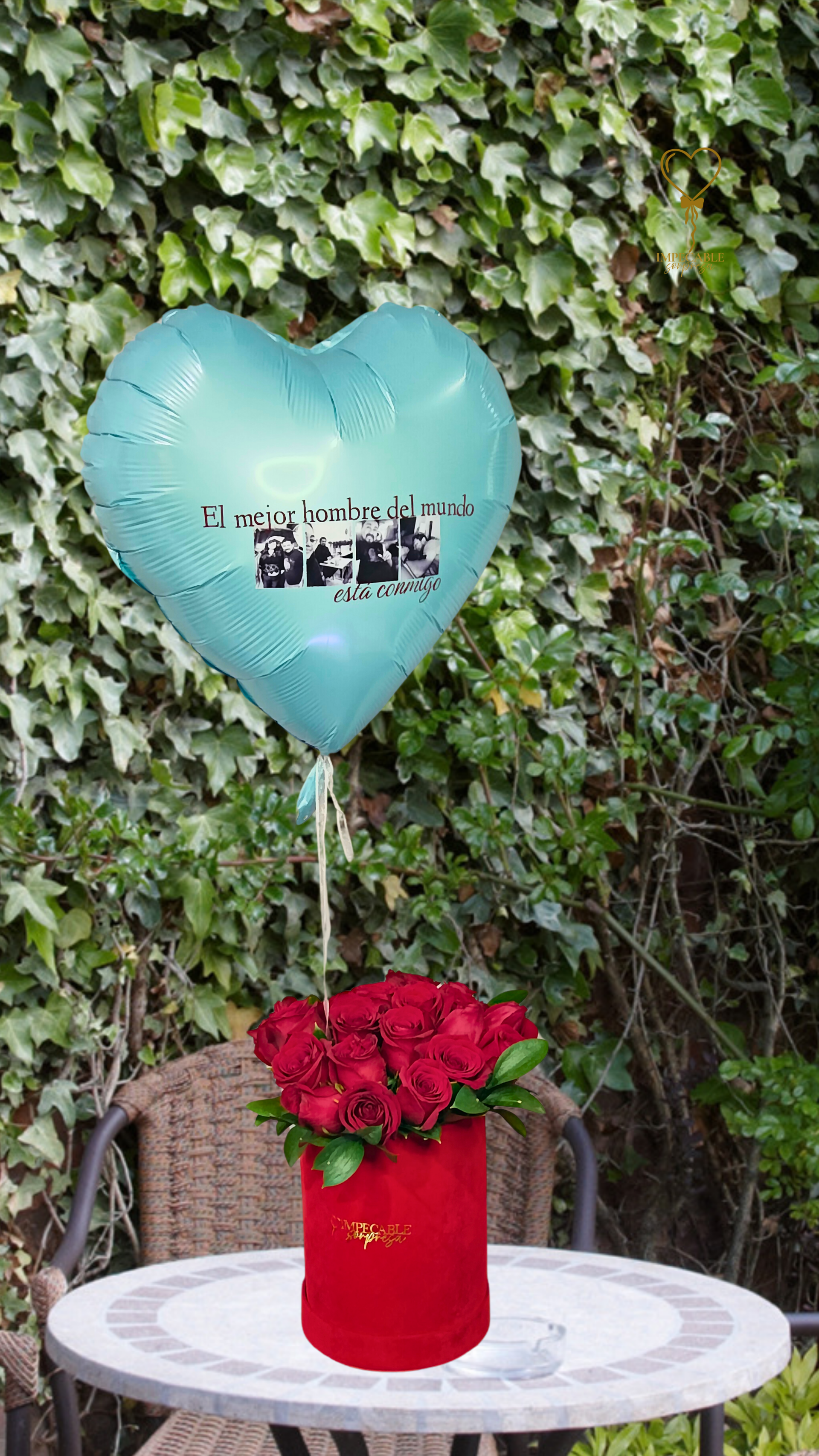 Arreglo Floral con Rosas Rojas Premium + Follaje + Cilindro Rojo de Terciopelo Artesanal